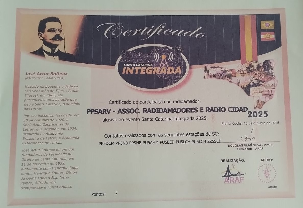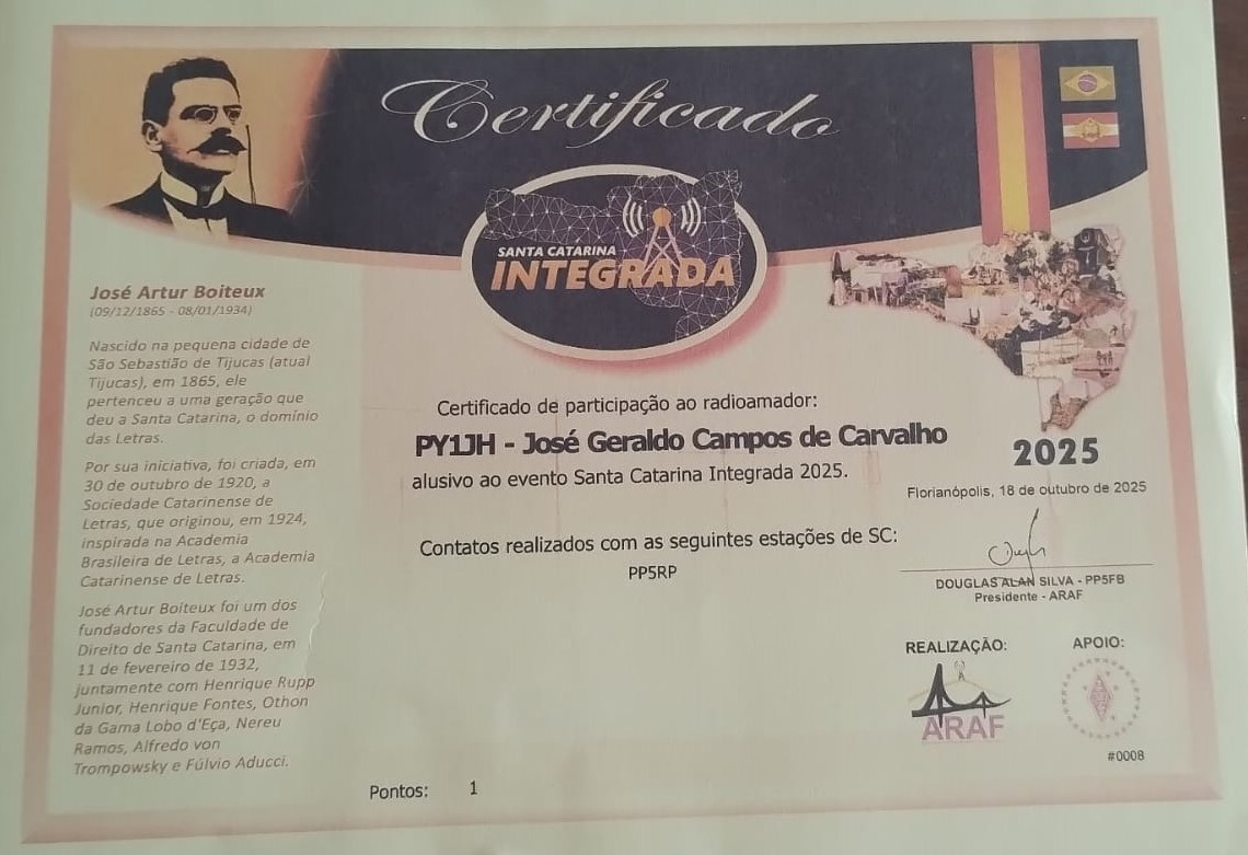 • Cartão de QSL recebido
